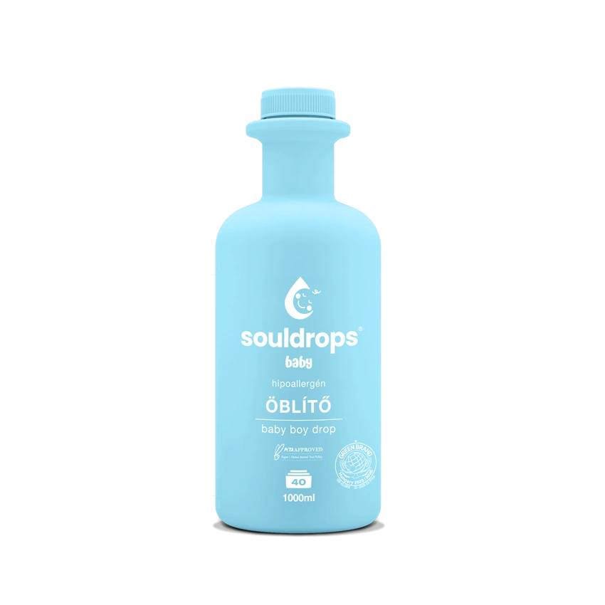 NOVO! Souldrops Baby BoyDrop Hipoalergeni mehčalec je mehčalec NOVE generacije za otroška oblačila, posebej razvit za občutljivo kožo dojenčkov in otrok. Njegova hipoalergena formula brez encimov in alergenov oblačila naredi izjemno mehka, antistatična in z nežno dolgotrajno dišavo, ki ne draži kože. Polnjen je v 100% reciklirano embalažo, ki podpira trajnostni način življenja.